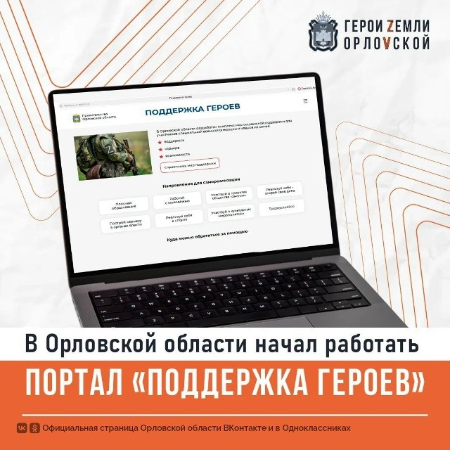 В Орловской области запущен новый информационный портал «Поддержка героев».